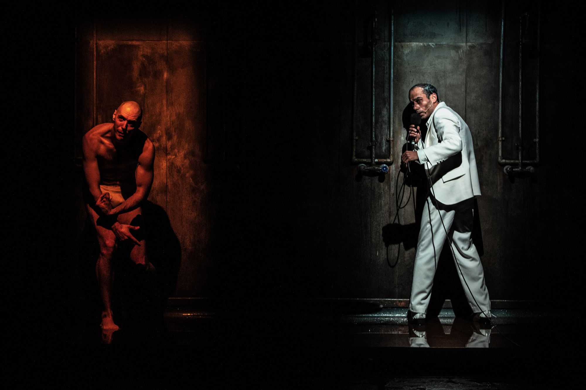 W spektaklu używane jest światło stroboskopowe, aktorzy palą papierosy