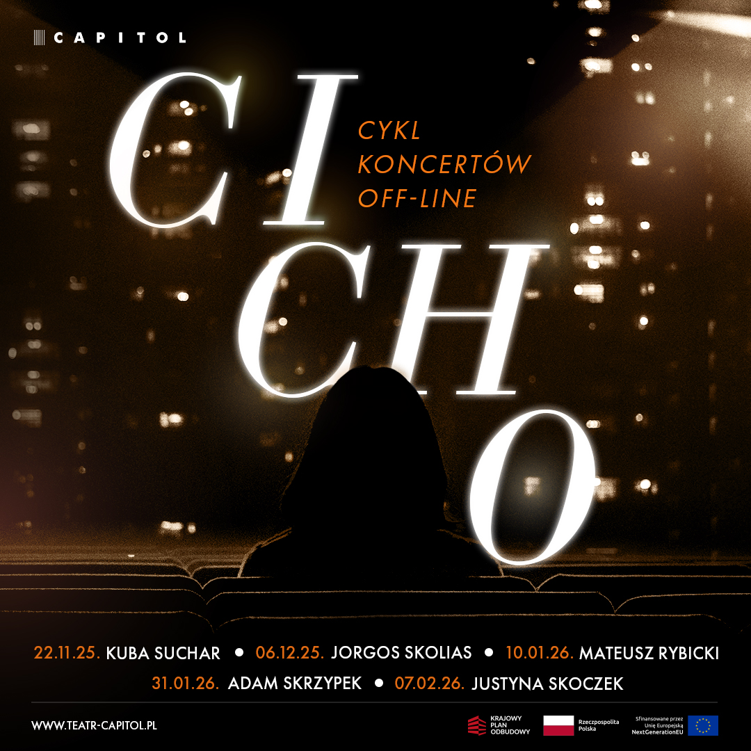 Telefony zrewolucjonizowały odbiór muzyki granej na żywo. Zamiast przeżywać każdą chwilę i delektować się każdym dźwiękiem, sięgamy po urządzenia elektroniczne, aby zarejestrować muzyczne wydarzenie, w którym akurat bierzemy udział. Chcemy, aby nasi widzowie powrócili do źródeł słuchania muzyki wykonywanej na żywo, gdzie liczy się tu i teraz. Tym samym, w koncercie CICHO można uczestniczyć pod warunkiem pozostawienia urządzeń elektronicznych w domu lub w teatralnej szatni, która zapewni bezpieczne przechowanie rzeczy. Idealnym rozwiązaniem będzie zostawienie telefonów w domu, aby w pełni doświadczyć ciszy muzycznego wieczoru. Bardzo do tego zachęcamy.