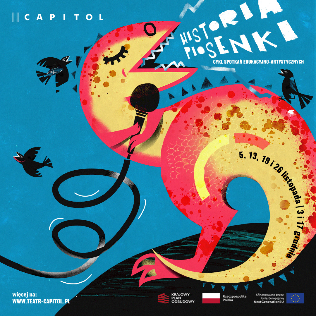 Piosenka jest jedną z najpopularniejszych form sztuki, która towarzyszy uczniom od dzieciństwa. Muzyka i słowa tworzą nierozerwalną całość, kształtują wyobraźnię, wrażliwość, a także przyczyniają się do umiejętności zapamiętywania i uczenia się. Piosenka posiada wielki walor edukacyjny i jest idealnym narzędziem do wykorzystania zarówno przez uczniów jak i nauczycieli. W Teatrze Muzycznym Capitol piosenki towarzyszą twórcom i artystom każdego dnia i są czymś więcej niż tylko elementem pracy – są źródłem wiedzy o kulturze i świecie. W związku z tym, chcemy się tą wiedzą podzielić z młodymi odbiorcami i opowiedzieć o historii piosenki w atrakcyjny sposób.